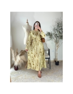 Plongez dans l'élégance décontractée avec cette robe longue boutonnée au motif subtil. Son tissu léger et fluide épouse gracieusement la silhouette, tandis que sa ceinture amovible souligne la taille pour une allure raffinée et confortable. Idéale pour un look bohème chic au quotidien ou pour une occasion spéciale.